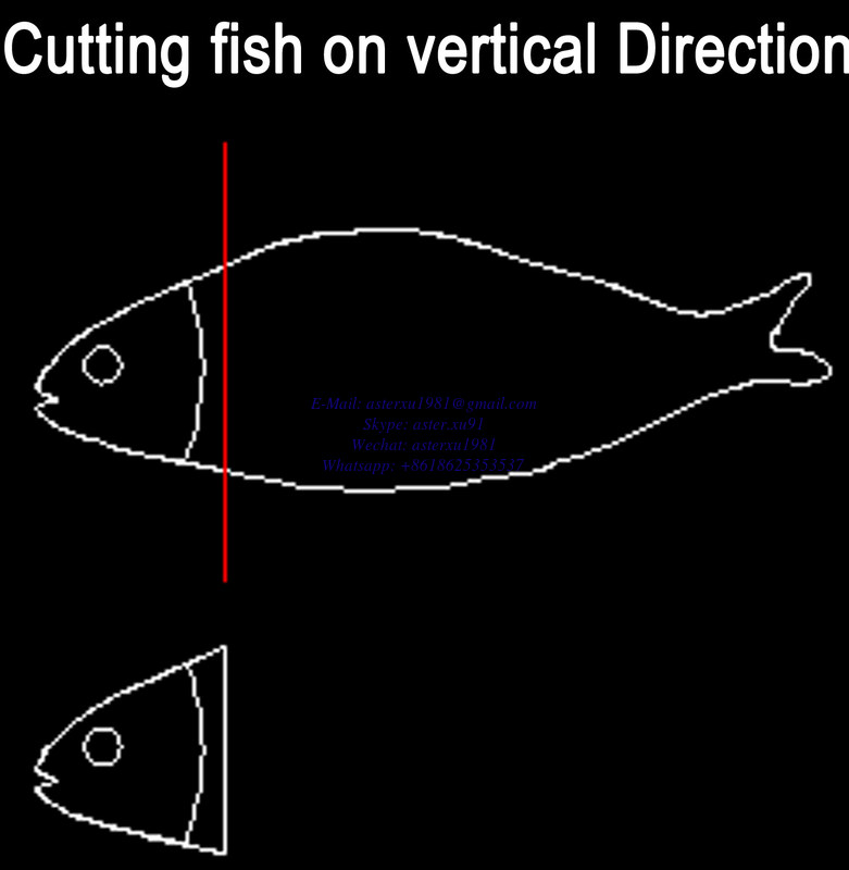 State: Fixed spin blade. Worker put the fish onto the conveyor, the fish head will be cutted by the blade while the conveyor passing the blade.
